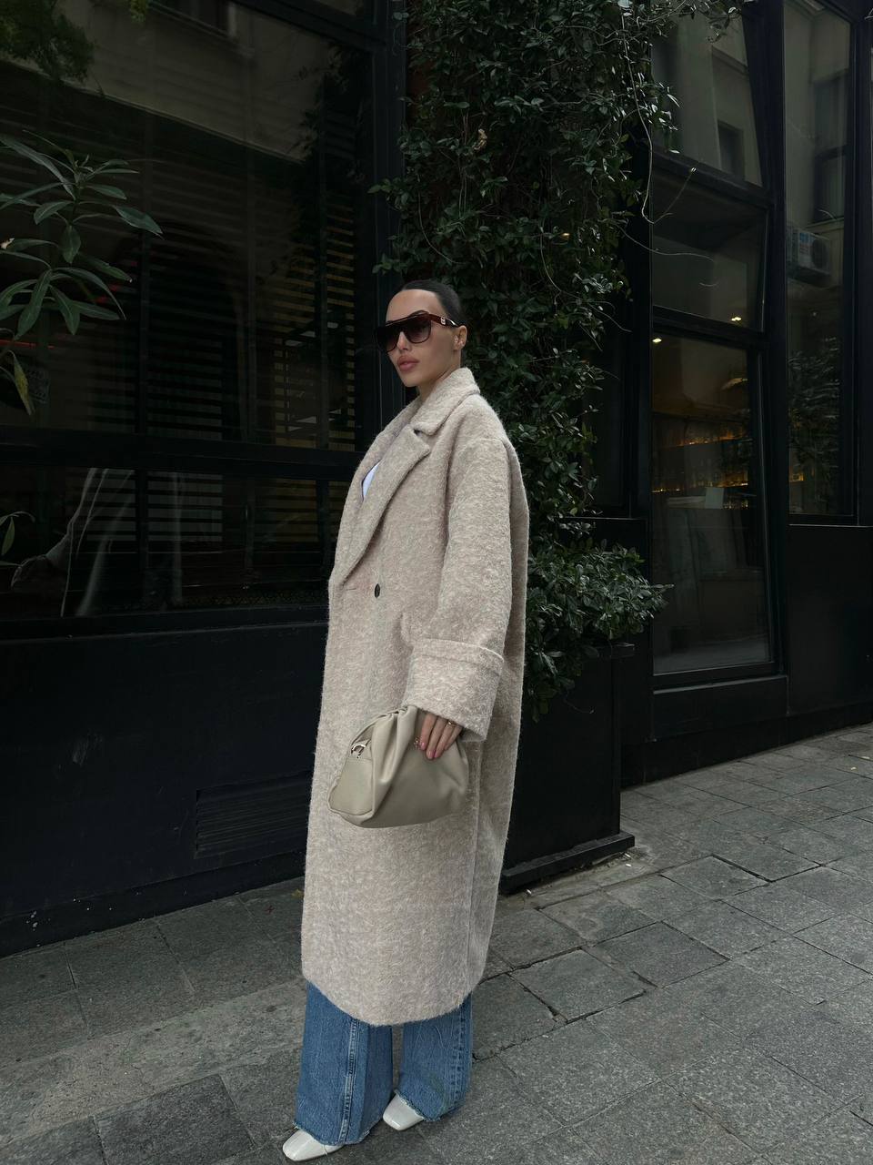 Elevate your wardrobe with this stunning beige bouclé coat, expertly crafted to blend timeless style with modern comfort. Made from a luxurious 50% cotton and 50% polyester blend, this coat offers the perfect balance of softness, breathability, and durability. The textured bouclé fabric adds a sophisticated touch, creating a beautifully structured silhouette that feels as good as it looks.